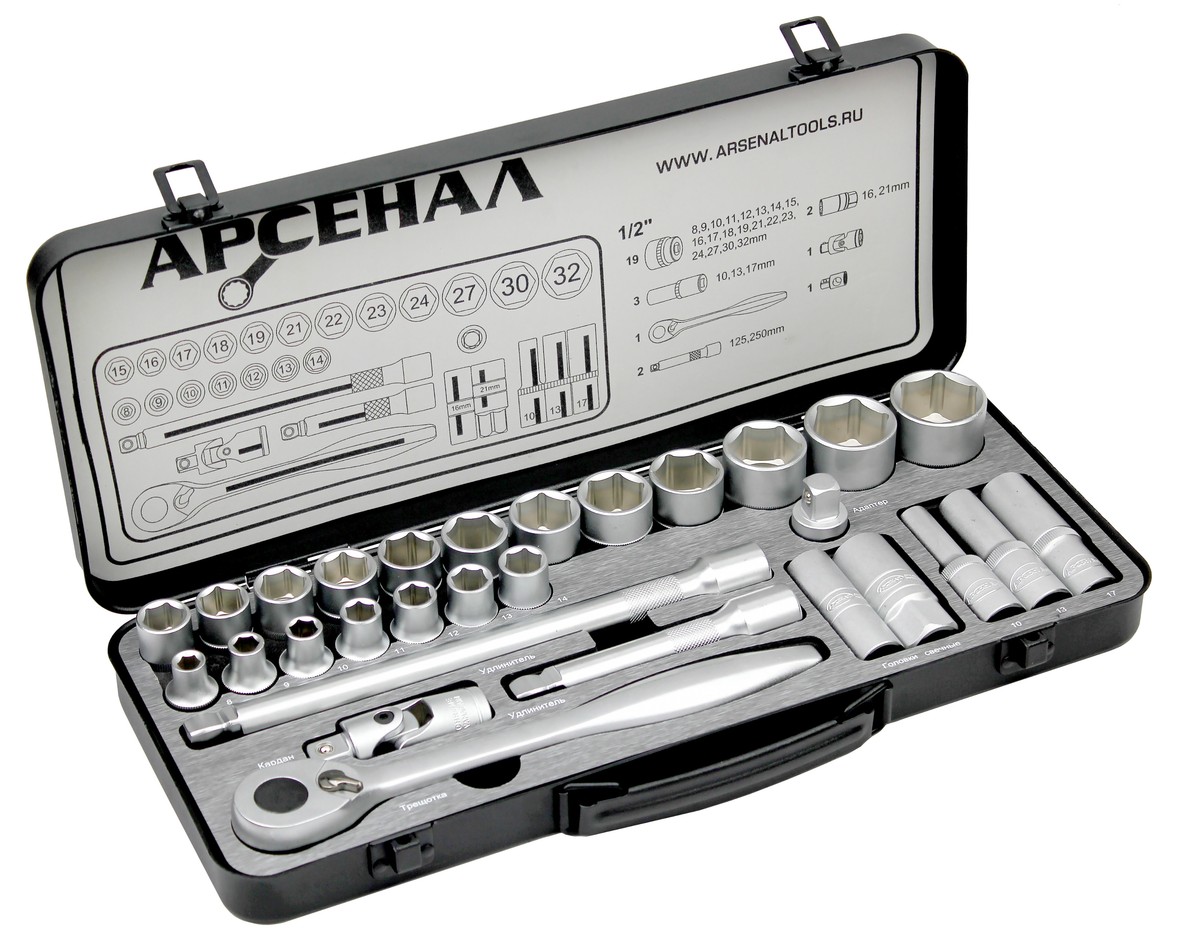 Набор инструментов 29 предметов (М) Арсенал АА-М12У29 оптимальная комплектация для самостоятельного ремонта личного автомобиля. Хороший подбор головок, в том числе глубоких. Особо прочная трещотка с металлической рукояткой.